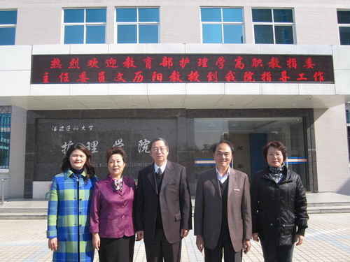 2012年12月7日,教育部护理学高职教指委主任委员文历阳教授莅临我院指导,文教授参观了护理学实验教学中心的教学环境和教学设施,对护理学院所取得的教学、科研成果给予肯定,并欣然提词:“兴旺发达、人才辈出、成果累累”。