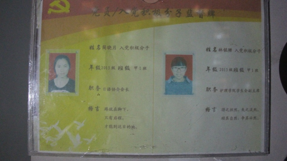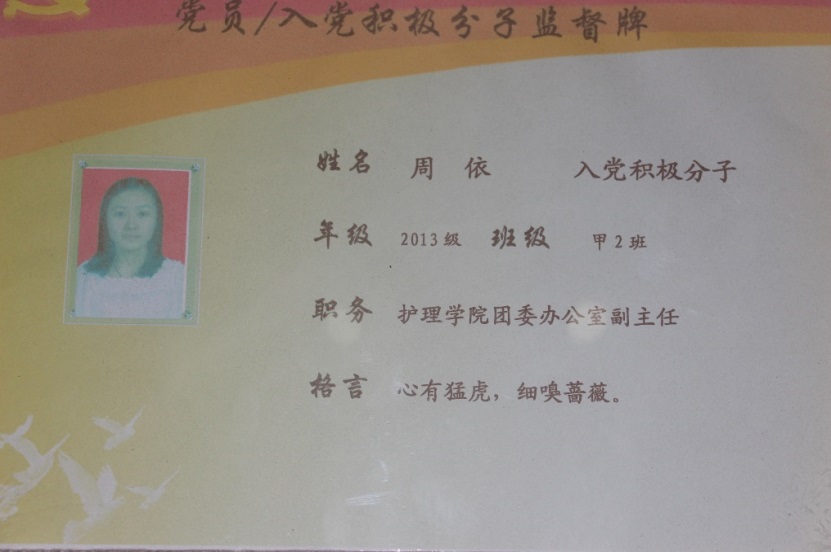 设立党员/入党积极分子监督牌为大学生党员/入党积极分子提供了一个展示自我,经验交流、示范带动的平台。宿舍是大学校园最小的组织单位,也是学生们生活集中、活动时间长、问题复杂敏感的学生管理盲区,通过宿舍区挂设党员/入党积极分子监督牌做法,实现了“一名党员、一面旗帜”的工作效果,是创建和谐宿舍、和谐班级、和谐系部、和谐校园必不可少且行之有效的重要举措。