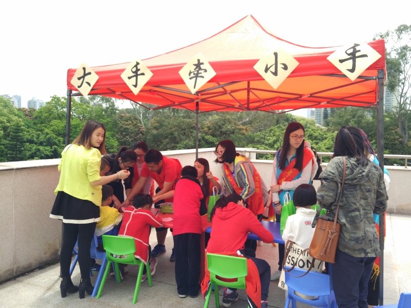 学生党员在省博展馆周边搭设帐篷与游客小朋友共同书写心愿