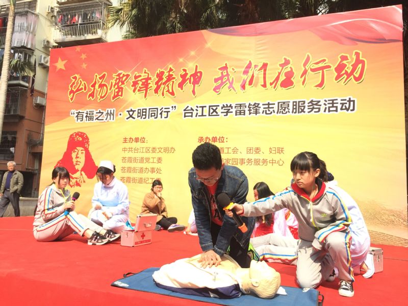 学生第三党支部向社区居民展示心肺复苏、手臂骨折等操作方法