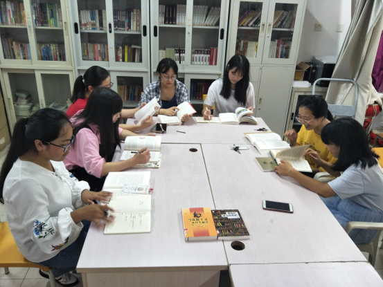 读书社成员分小组围坐在一起,通过诵读《共产党宣言》《马克思主义十五讲》《为人民服务》等原文原著中的经典片段,一起领悟经典,感悟崇高。