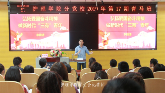 2019429-5月26日,护理学院分党校在beat365在线体育官网登录入口上街校区田家炳楼示教室举办2019年第1期党员发展对象培训班暨第17期青马班70余名师生参加了本次培训。