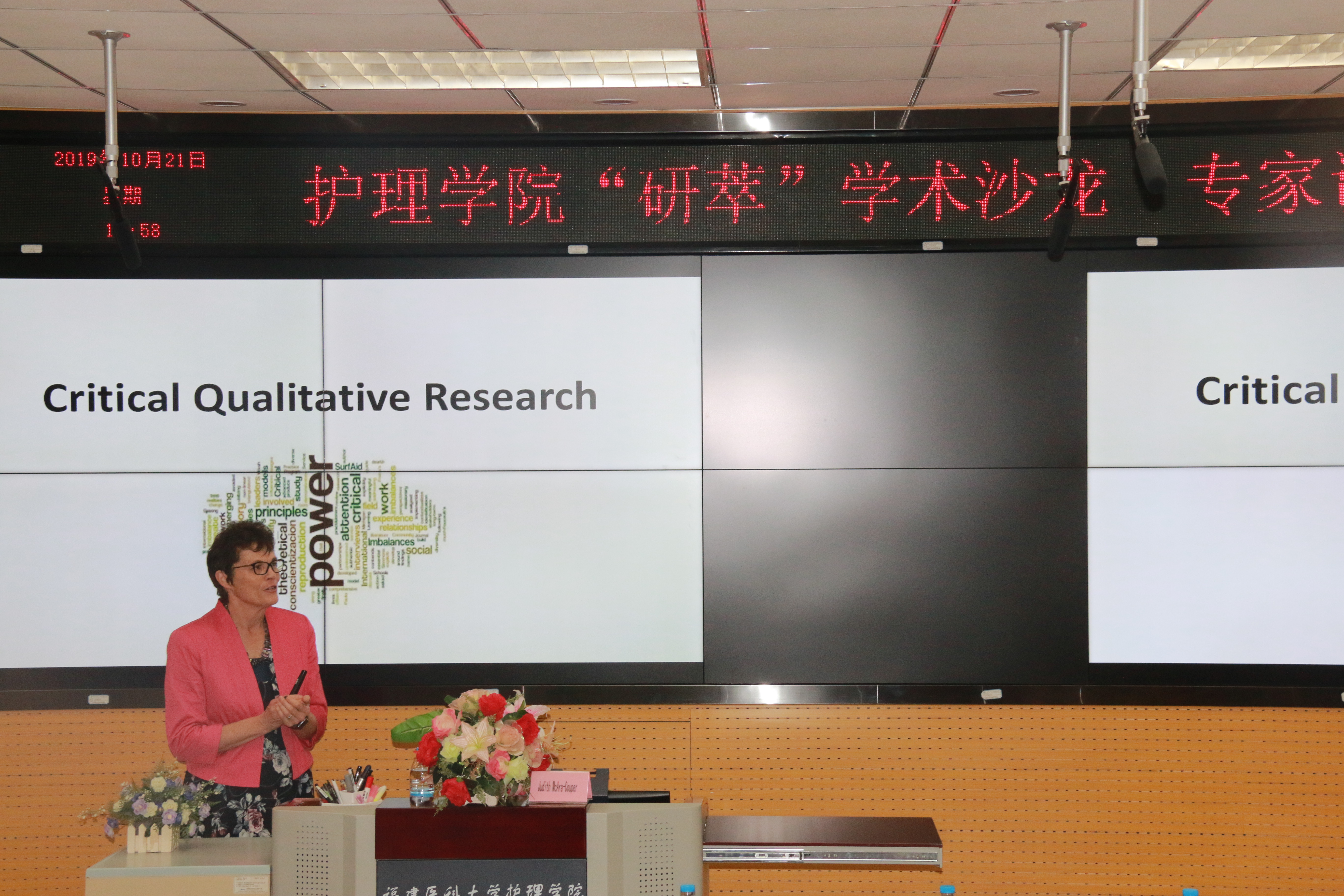 10月20日-10月26日期间, beat365客座教授Judith McAra-Couper博士应邀来beat365访问。期间,与护理学院就2020年1月份beat365助产专业学生赴该校学习项目制订具体计划、开发两校合作办学助产课程、助产合作课题等进行充分交流。Judith教授还在护理学院作了两堂精彩的学术讲座:批判性定性研究讲座、课题与论文撰写座谈会,拓展了师生科研思路;并为2019级助产本科生授课6学时,就“母乳喂养的好处及其社会文化因素”与助产学生进行了分享。