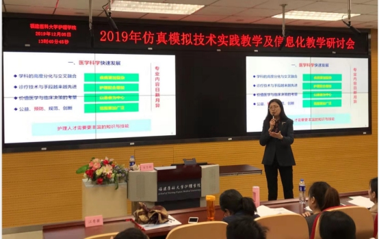 护理学院胡蓉芳教授做“基于虚拟仿真实训系统的混合式实验教学模式的构建与应用”专题报告