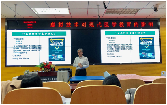 20191217日晚,护理学院于上街校区田家炳楼护理学院示教室,举办以“虚拟技术对现代医学教育的影响”为主题的“研萃学术沙龙。厦门大学汤乐民教授通过解读 VRVirtual Reality)、ARAugmented Reality)、MRMixed Reality)三者的定义、原理、区别以及在医学教育中的实际使用,详细介绍了虚拟技术在医学教育的应用现状,进一步加深了学院师生对虚拟技术在教学中的认知,对学院开展虚拟仿真实验教学改革具有十分重要的指导意义,师生们受益良多。