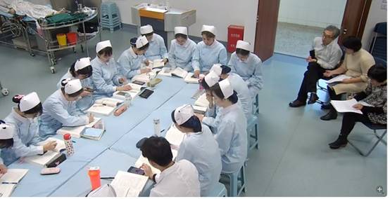 审核组专家分为二组,第一组由汤乐民教授负责审核护理学专业课程设计和开发等教学内容,通过查看教案、讲稿,结合新版护理学专业人才培养方案,提出了教材编写的规范化要求,更提倡老师们要在虚拟仿真教学中引入最新情境化教学的新理念。第二组辜瑜老师在对标复核去年初审时发现的不符合教学模拟服务规范的各个事项时,对各部分事项的整改力度和改进效果表示满意,表示此次复审工作更侧重于进一步规范护理学实验中心的日常管理,构建更适合中心发展的总体目标。
