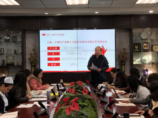 2020年12月30日下午16:30,护理学院在田家炳楼会议室举办党的十九届五中全会宣讲活动,护理学院党委书记杨浩做了题为《学习贯彻党的十九届五中全会精神奋力推进学院新一轮发展》的辅导报告,学院全体教工参加了宣讲会。