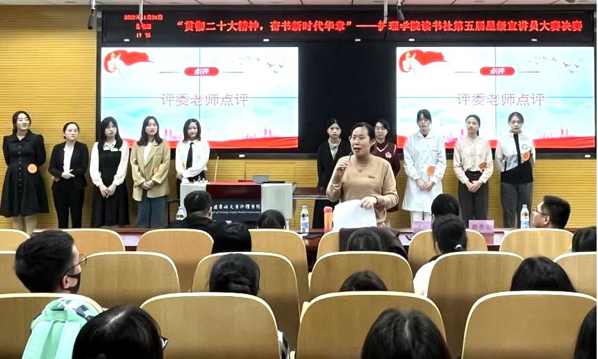 新蓝图已然绘就,新征程击鼓催征。以信仰之光照亮前行之路,以如磐初心凝聚奋斗伟力。此次星级宣讲员大赛不仅让护理学子对党的二十大精神有了更深刻的领悟,同时也提升了护理学子的思想高度。我们会不断创新,继续打造习近平新时代中国特色社会主义思想“星级宣讲员”品牌,迈出步子,体现护理“高度”;突破瓶颈,体现护理“温度”;精准发力,彰显护理“深度”。