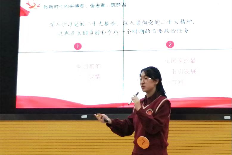 选手们聚焦党的二十大报告,围绕党史学习教育、模范人物、习近平总书记重要讲话精神、青年担当等内容展开主题宣讲。用饱满的激情、生动的语言、鲜活的事例,带领同学们深入了解党的二十大报告中所蕴含的新观点、新论断、新要求,充分展现了我院青年学子坚定不移的理想信念和奋发昂扬的精神风貌。