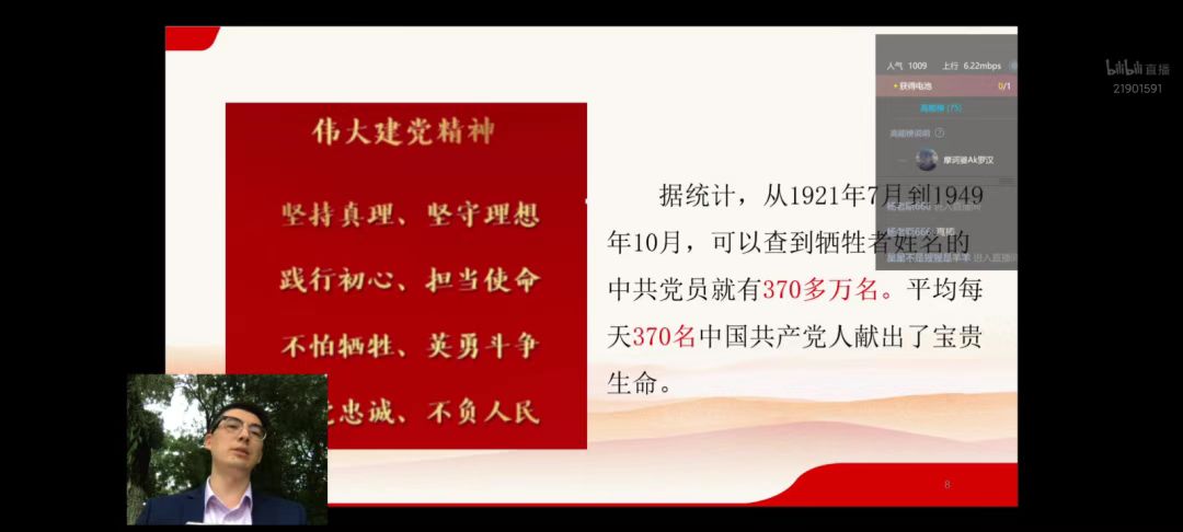 9月12日,我院与beat365在线体育官网登录入口明惠兄网络名师工作室、西藏那曲安多县大学生公益团队,通过线上B站直播方式,面向护理学院全体学生党员、发展对象、入党积极分子、护理学院习近平新时代中国特色社会主义思想读书社全体成员,联合开展以“传承伟大建党精神,践行强国青春誓言”为主题的云端分享会活动。旨在传承伟大建党精神,帮助同学深刻理解习近平总书记“七一”重要讲话精神,提高政治素养,引起同学热议。