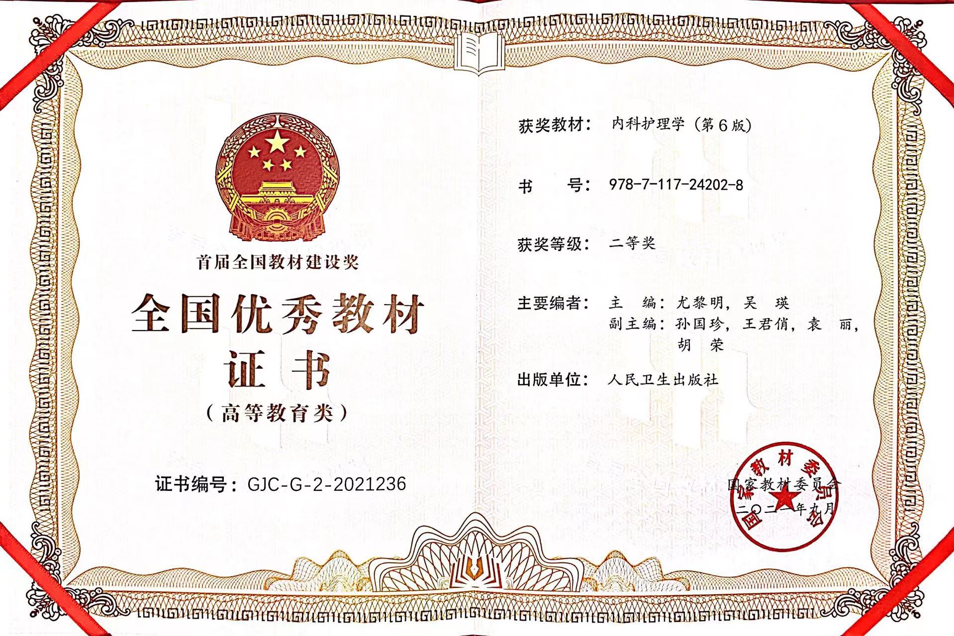 《内科护理学》(第6版)荣获全国优秀教材二等奖