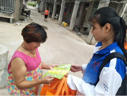 活动伊始,实践队队员来到南山公园向参观游客及当地居民讲解艾滋病的危害、传播途径、及防艾措施,随后,队员们身着印有:“我是艾滋病患者,你愿意给我一个拥抱吗”定制服装于公园热闹地段开展“爱的抱抱”活动,邀请市民一同握手、拥抱、合影,以纠正市民对艾滋病的错误认识并提高其防治意识,最后,实践队联合长乐疾病控制中心深入村庄,挨家挨户发放艾滋病防治知识宣传手册以及防艾生活用品,激励市民养成健康良好的生活方式,提高艾滋病防治的用心性与自我防护的意识。