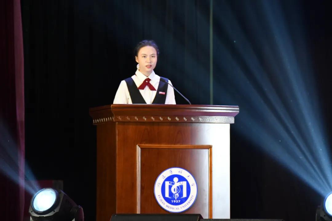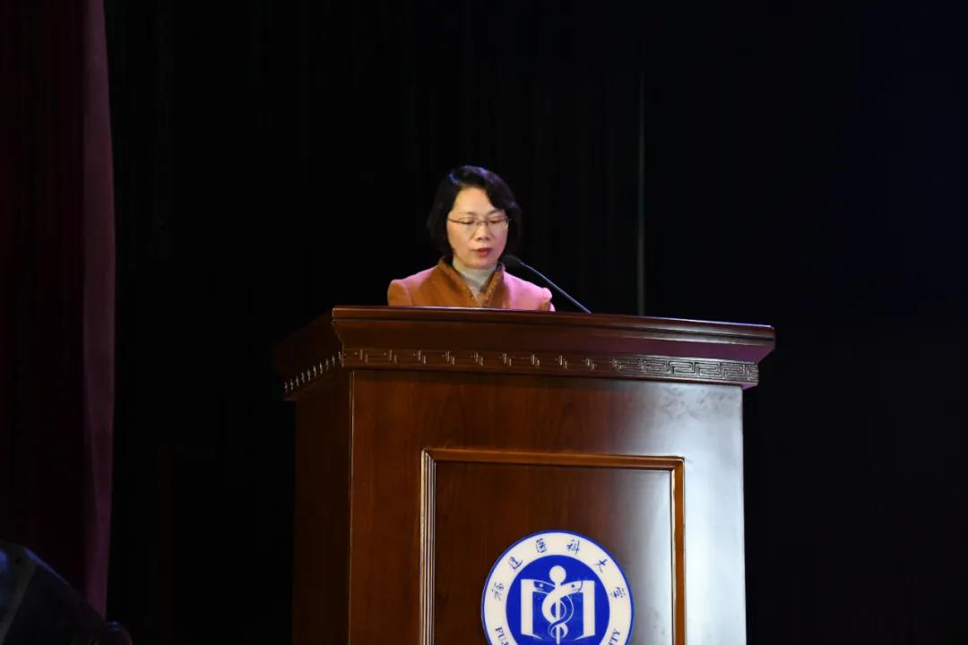 教师代表基础护理学系黄菲菲副教授寄语新同学,希望同学们能够学会为人,学会学习,学会做事,勤学上进,勇于开拓,接过学长学姐的接力棒,在学院全体教师的指引下,再创护理佳绩!