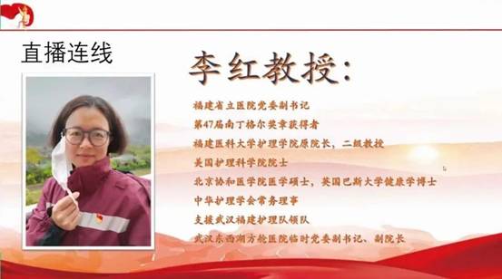在抗击疫情的关键时刻,第47届南丁格尔奖章获得者、福建省立医院党委副书记、我院原院长李红教授,带领福建省专科护理团队奔赴武汉战“疫”一线接管武汉东西湖方舱医院。活动现场我们连线了李红教授,请她和我们分享“李妈妈”的战疫故事。