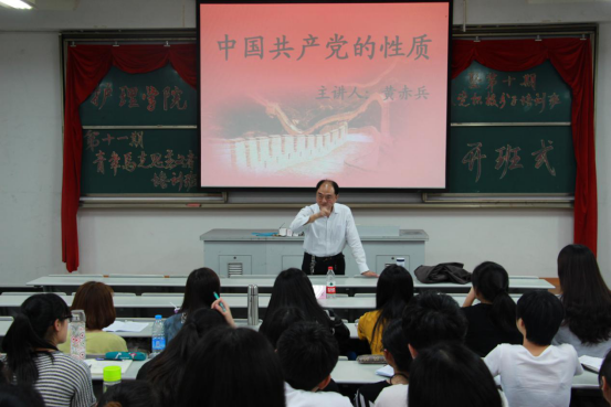 紧接着,黄赤兵书记为认真的同学们上了第一堂党课。课上,书记话谈国际共产主义的产生背景及中国共产党的诞生与曲折发展,深入剖析党的性质——全心全意为人民服务;并分享自身经历与感受,谈及党带给中国人民生活上翻天覆地的变化,告诉同学们要感谢党,同时提出一个优秀的共产党员应该有担当,与时俱进,只有这样,才能让党保持活力,不断地进步,不断地发展,建设一个更受人民拥戴的执政党。