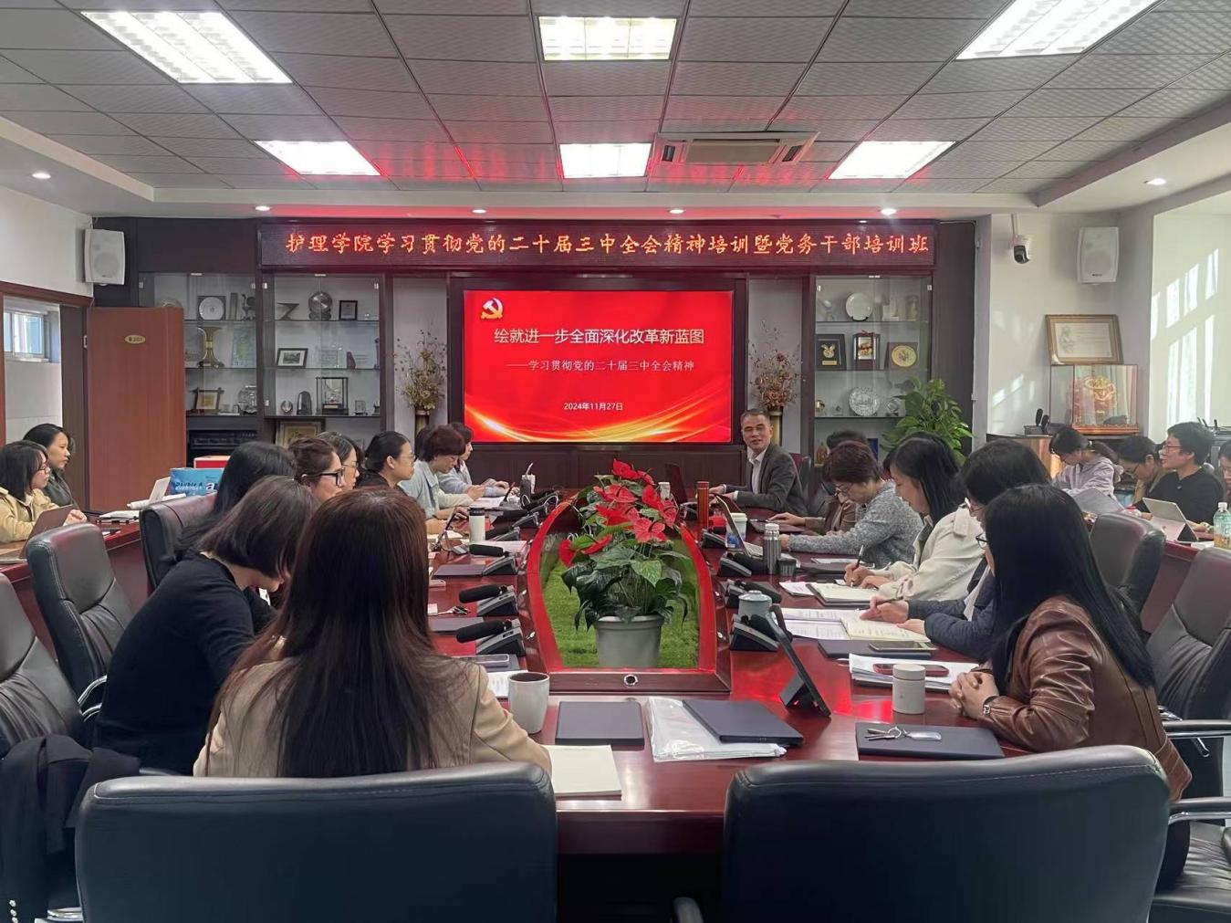 刘国有以《绘就进一步全面深化改革新蓝图——学习贯彻党的二十届三中全会精神》为题从党的二十届三中全会的重大意义和主题、深入学习领会习近平总书记关于全面深化改革的重要论述、如何抓好贯彻落实等三个方面,结合护理学院工作实际,对党的二十届三中全会精神作了系统、生动的阐释和宣讲。