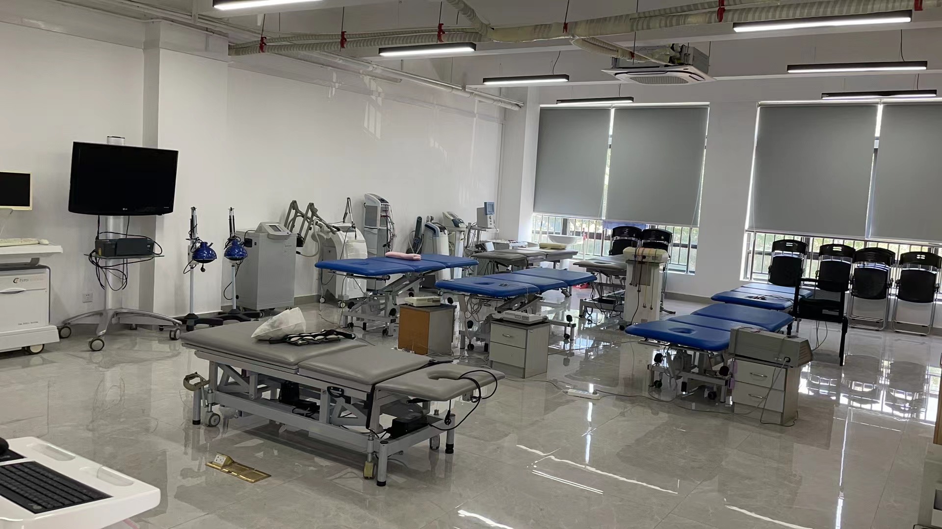 主要用于《作业治疗学》专业课程的实训教学,配备智能家居适老化与无障碍设施(包含:无障碍升降灶台、语音盲文微波炉、适老化卫生间系统、体位转移器等设备)与基于PEO模式的日常生活活动评定和训练虚拟仿真系统。使学生在熟悉作业治疗理论的基础上,通过线上线下双线融合的实践教学模式,掌握作业治疗的常用技术。