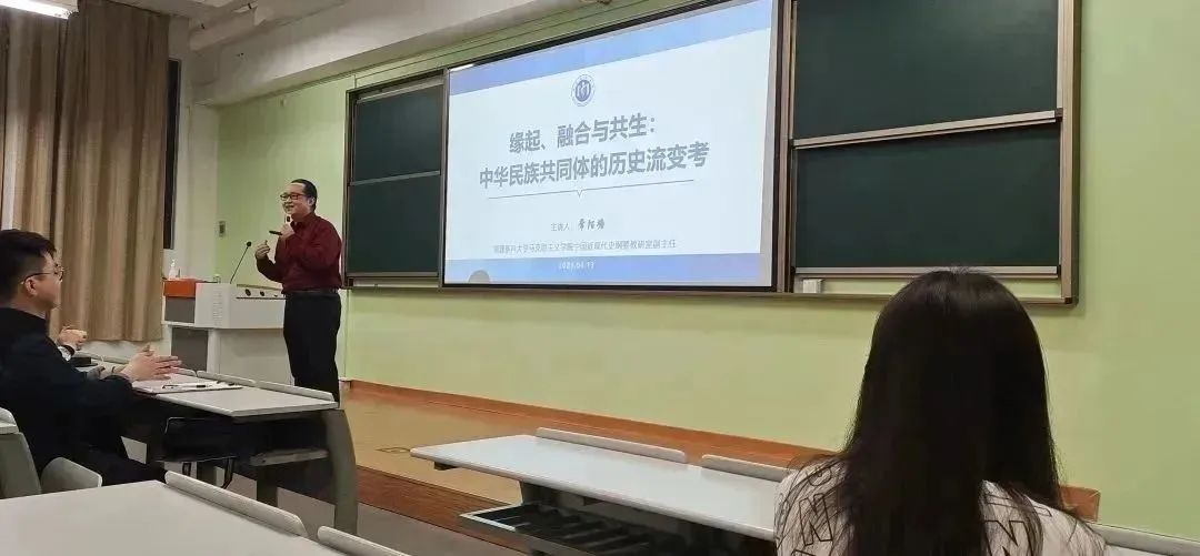 常陌塘老师以“缘起、融合与共生:中华民族共同体的历史流变考”为主题,从中华民族共同体的缘起、中华民族共同体意识及实践的历史流变、怎样铸牢中华民族共同体意识等几个方面,讲授了一堂生动的专题讲座。